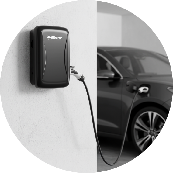 La borne de recharge électrique Black Access de Wellborne est la plus accessible de la gamme, offrant une solution fiable et flexible pour recharger tous les véhicules électriques chez soi. Idéale pour une maison individuelle, un garage ou une résidence secondaire.