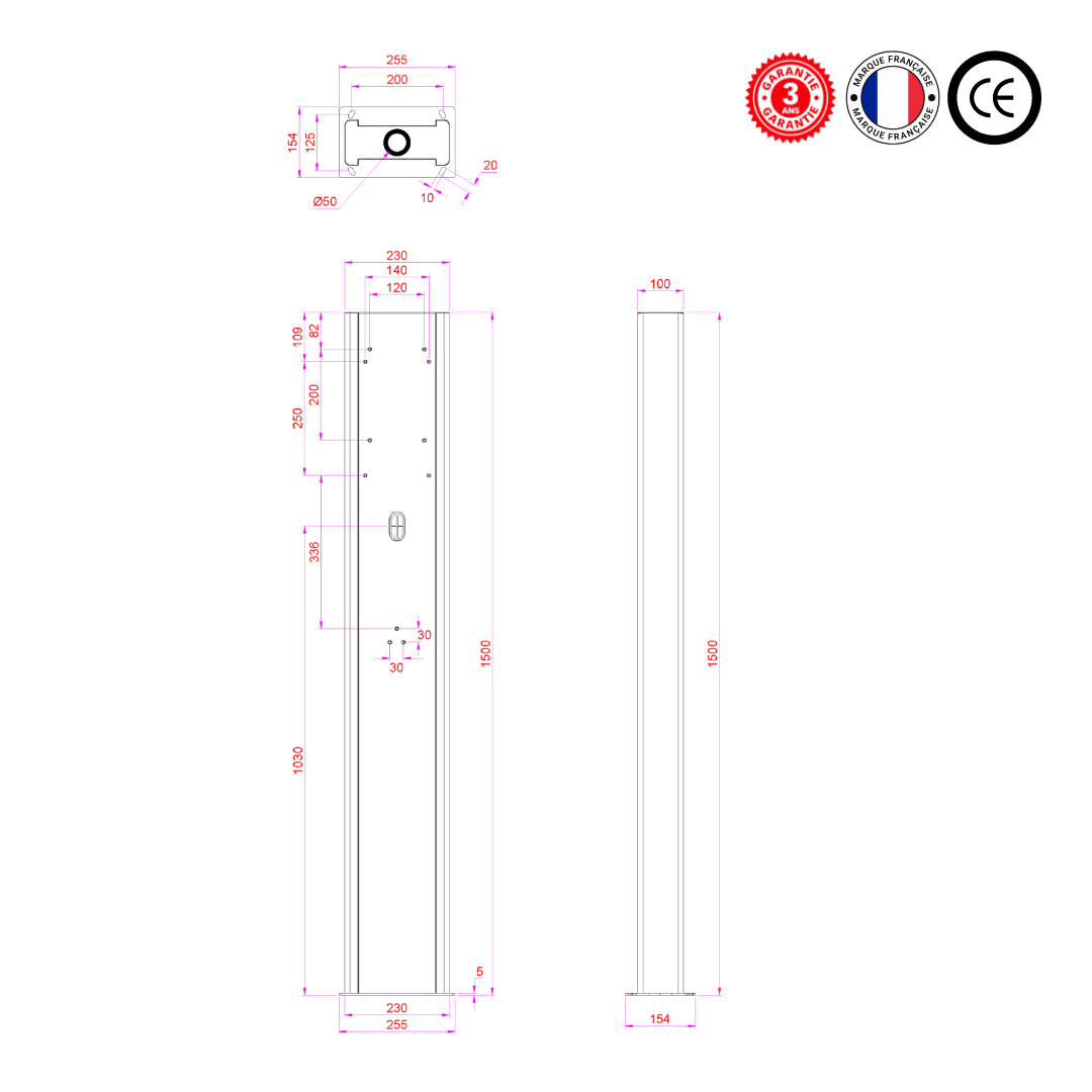 • Conception acier thermolaqué, résistante aux intempéries